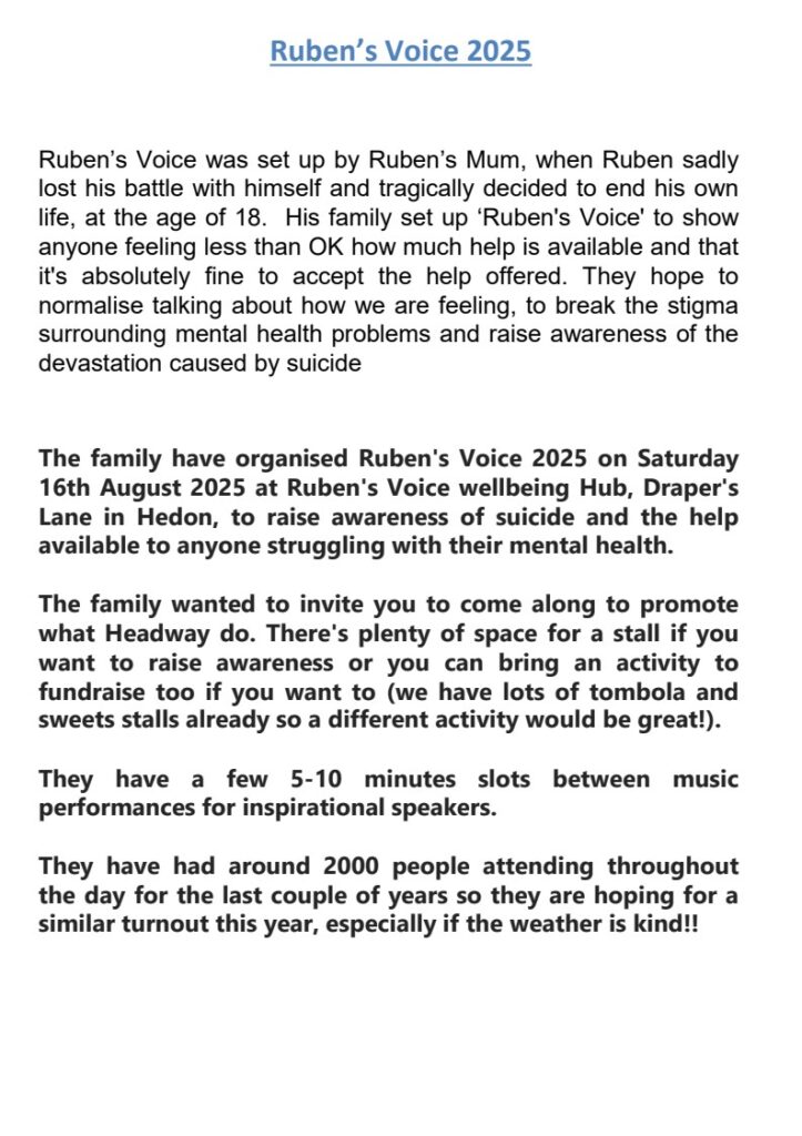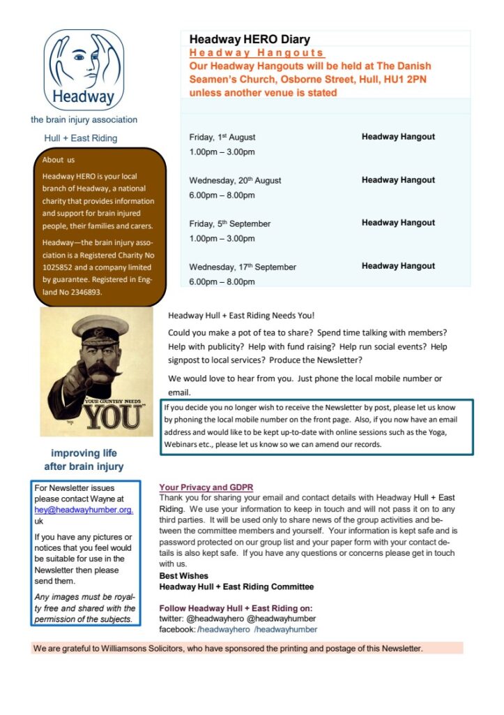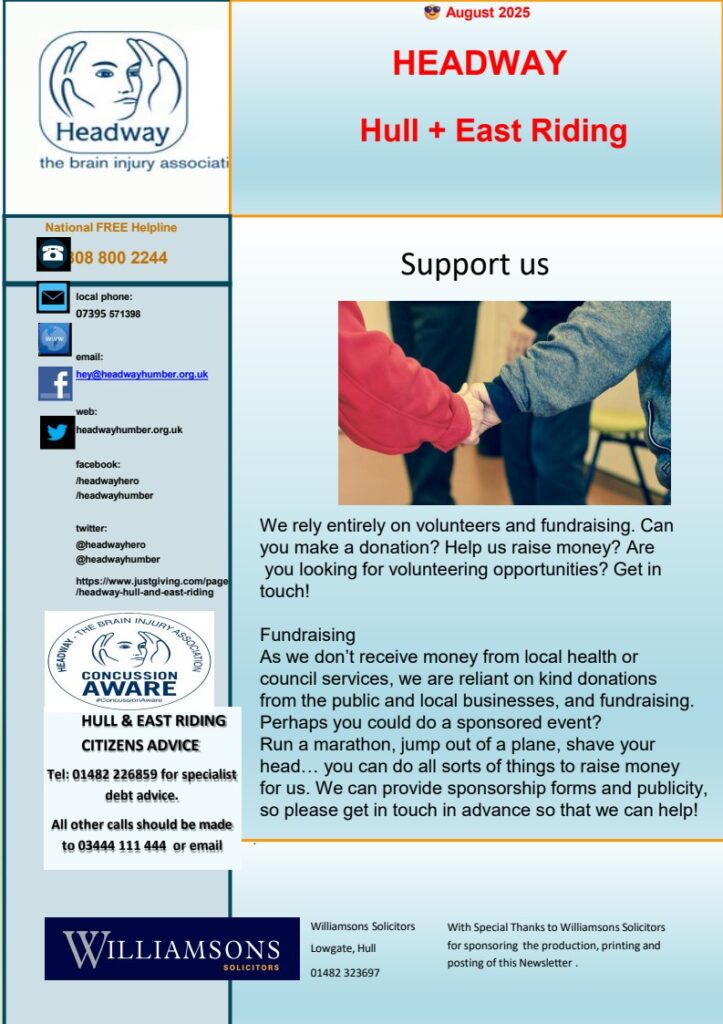 Headway Hull & East Riding’s newsletter for August is now available, just click on the link below to download.