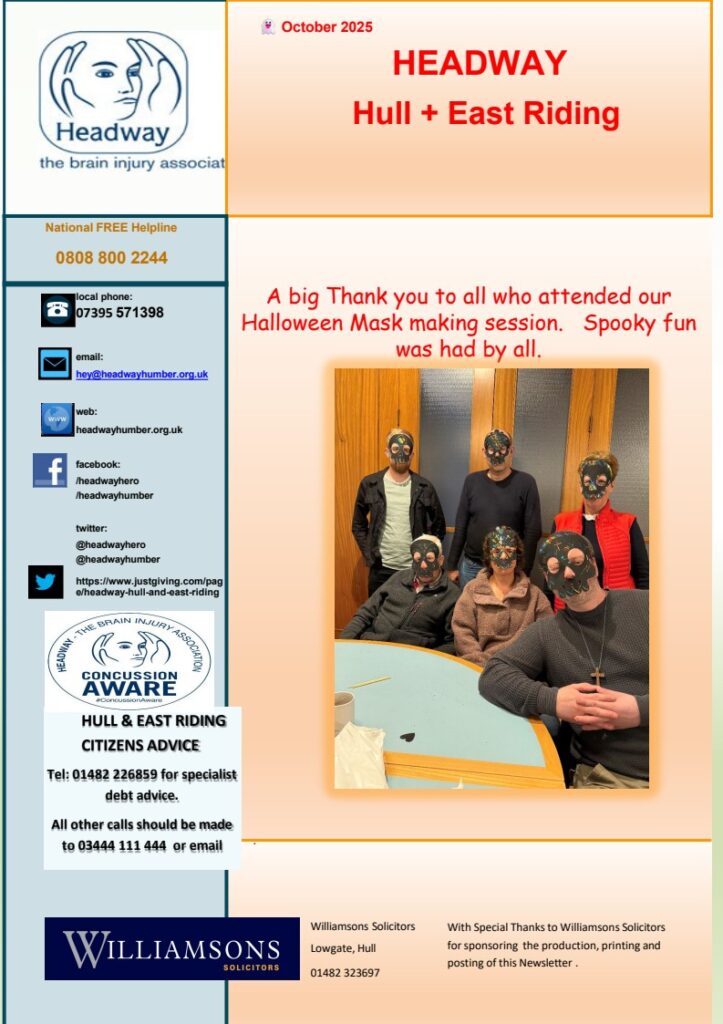 Headway Hull & East Riding’s newsletter for October is now available, just click on the link below to download.
